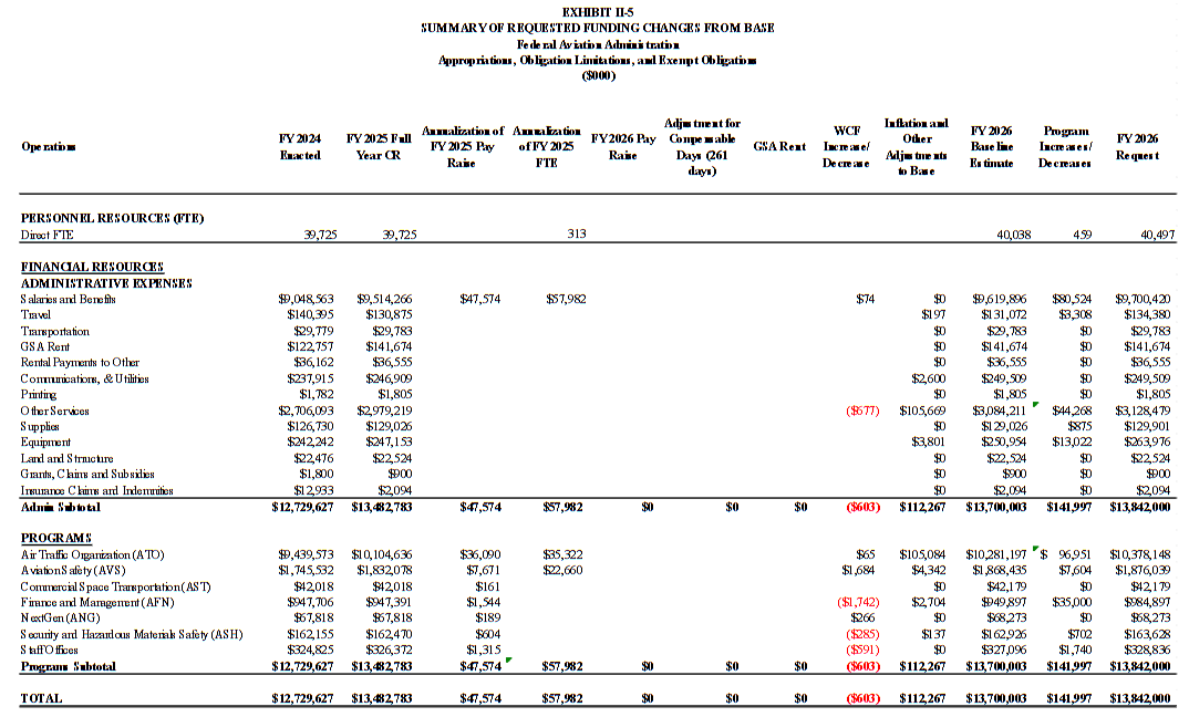 The FY 2026 Budget Estimates for the FAA ran about 385 pages. It's a lot chattier and detailed than the CBJ for Bureau of Prisons. While it has the same tabular material, it also has a lot more narrative. For example:
